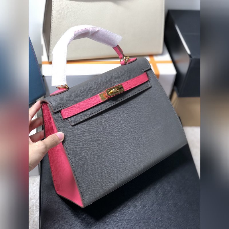 Hermès Kelly 25cm Peach Pink Grey Leather Soft Texture