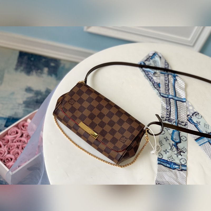 LV Chocolate Smooth Leather Trim Crossbody Bag