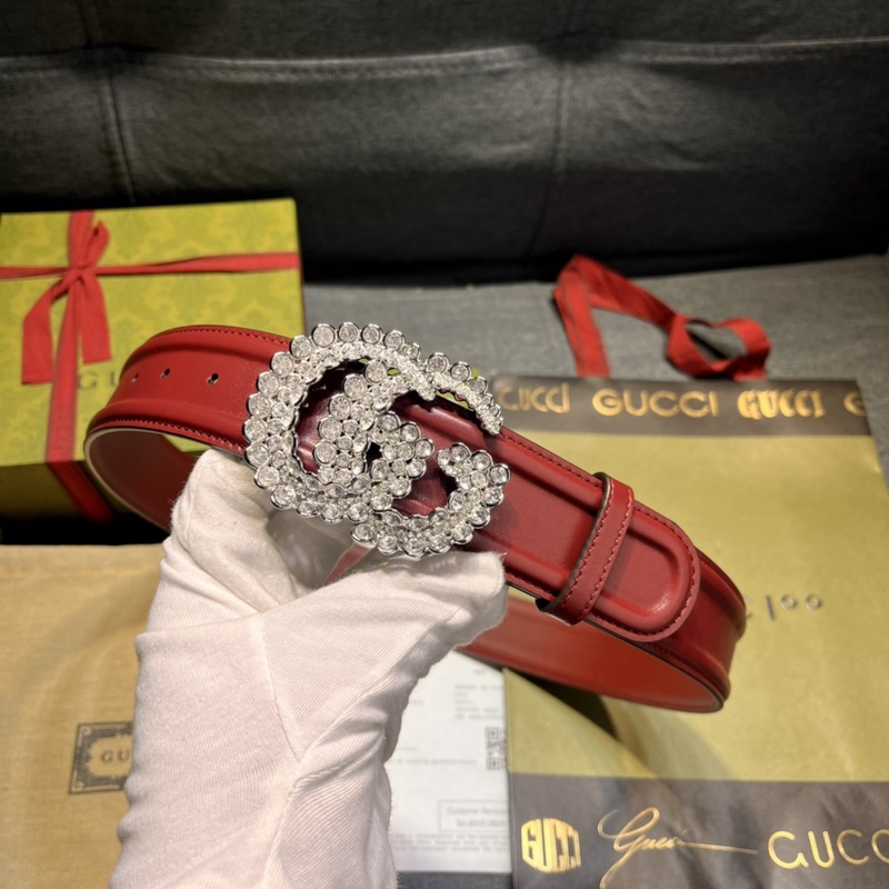 Gucci Double G Rhinestone Buckle Belt 4.0cm New Model