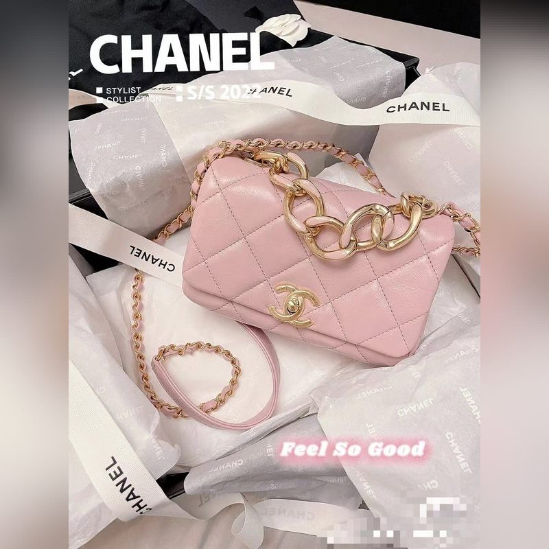 CHANEL Pink Chain Crossbody Handbag Luxurious Quilted Design