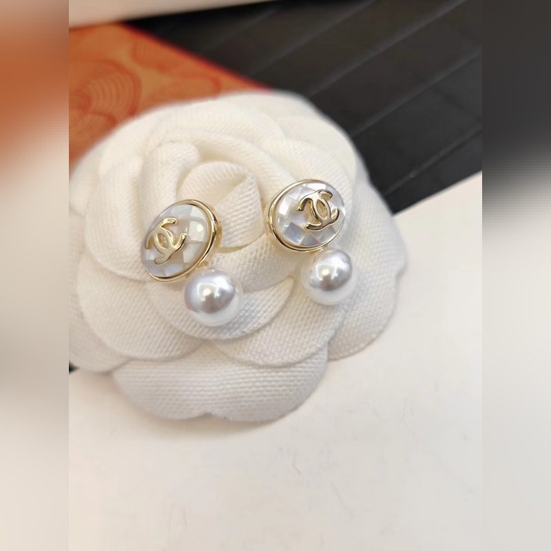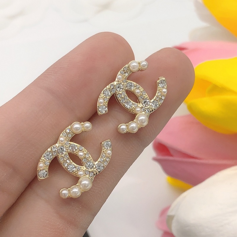 Chanel XED0182 Pearl CC Earrings with Diamonds Yellow