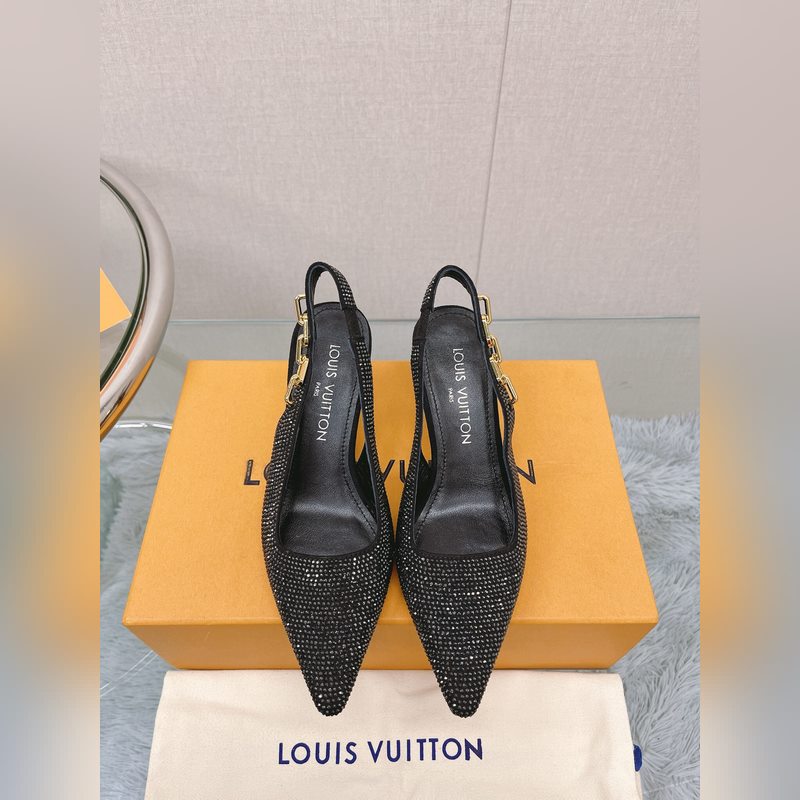 LV 2023 Sparkle Open-Toe High Heels with Chain Detail