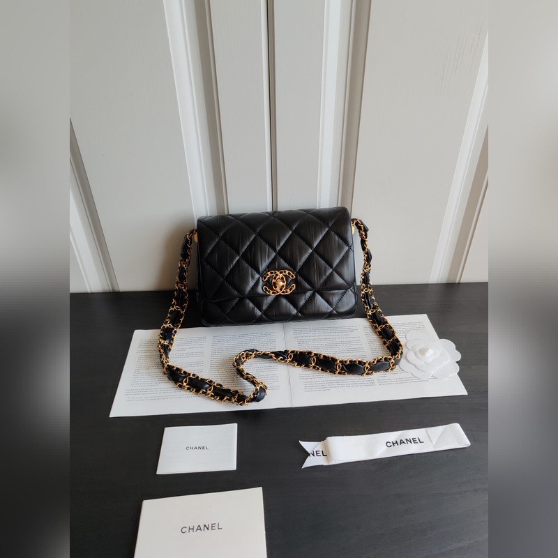 23K Pleated Wide Chain 19Mini Tofu Replica Bag Matte Textured Cowhide