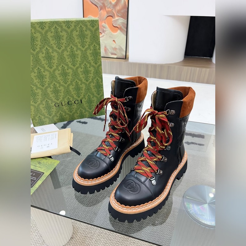 GUCCI Fall/Winter 8-Inch Ankle Boots Double G Embroidered Colorful Laces