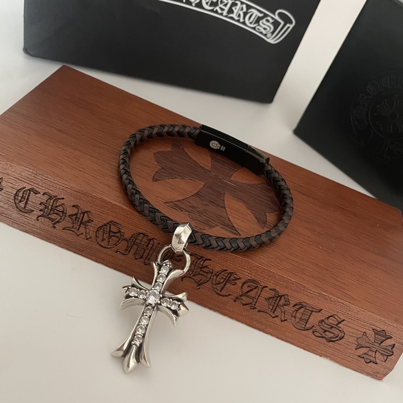 Chrome Hearts Diamond Cross Pendant&Leather Bracelet GD Edition