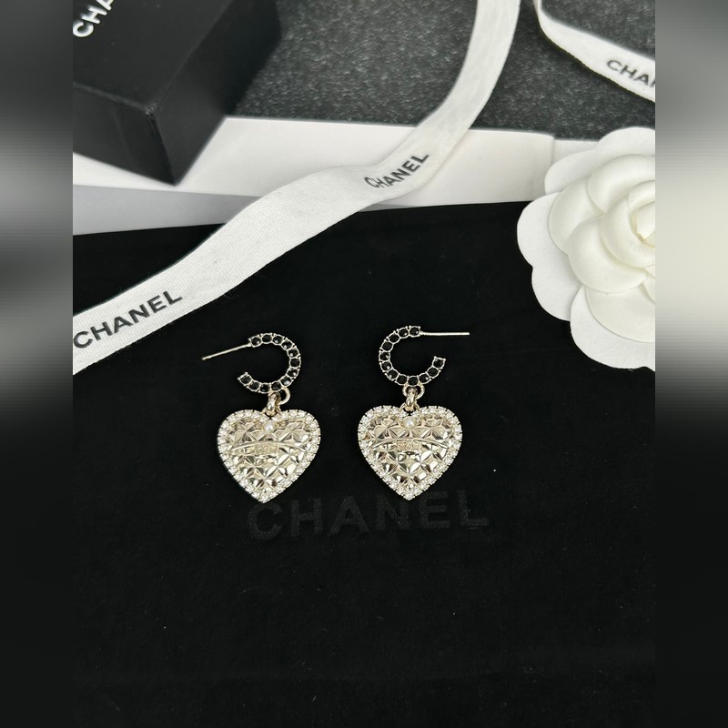 Chanel Heart Quilted Black Diamond C Earrings Elegant Quality