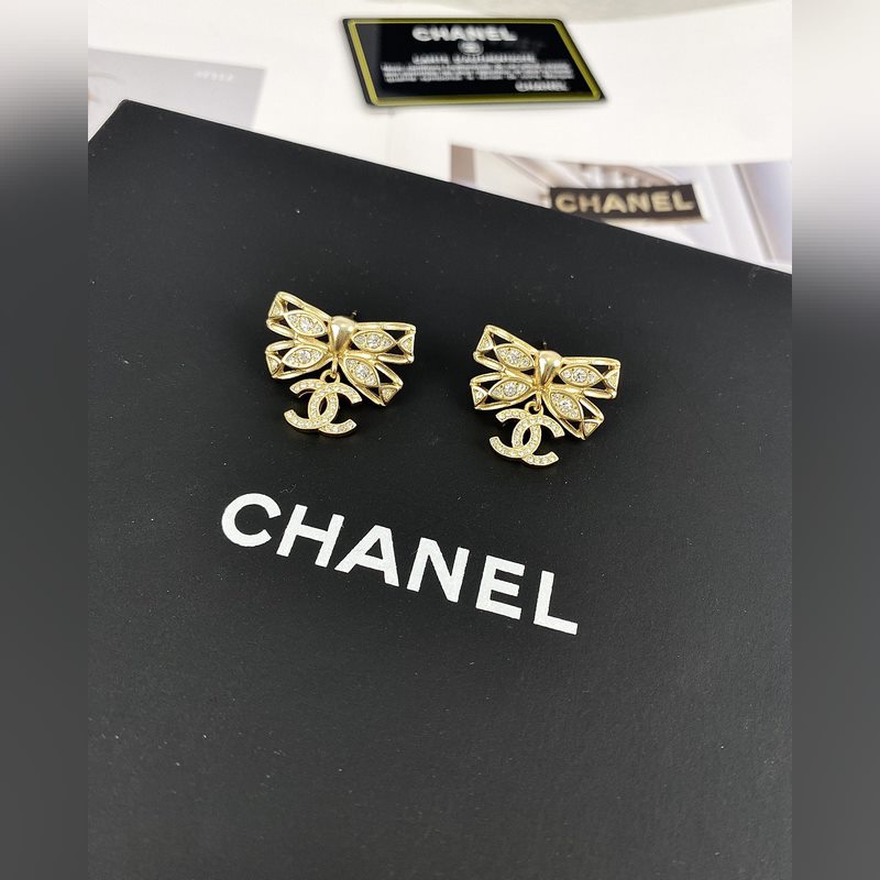 Chanel Lace Bow Diamond Stud Earrings