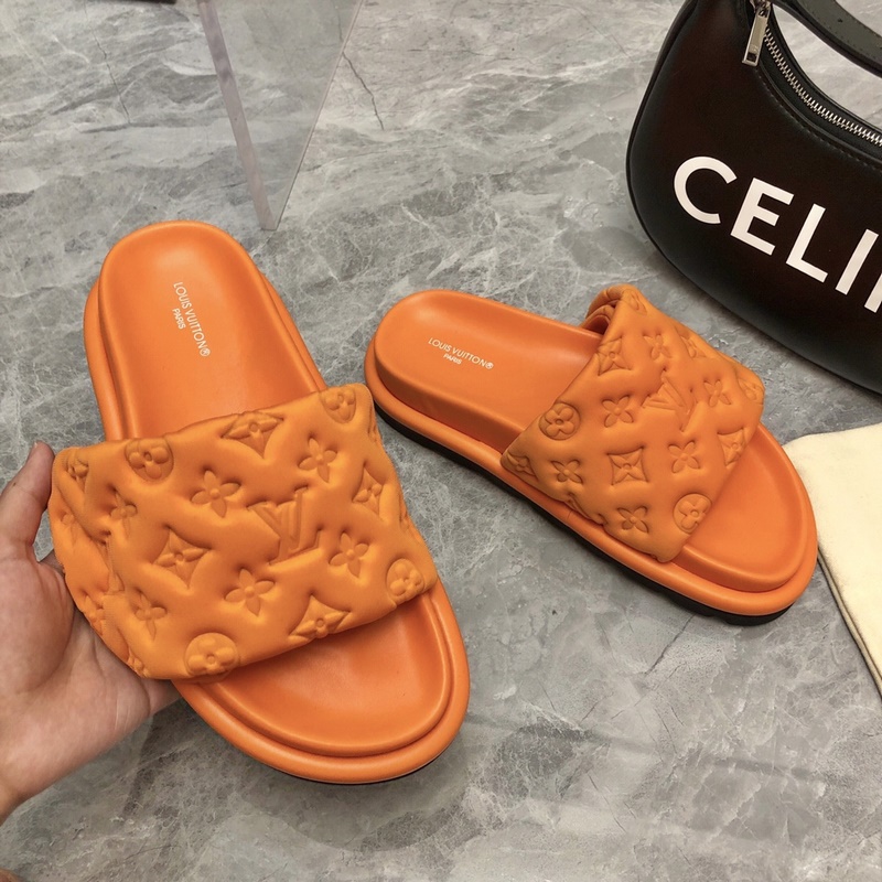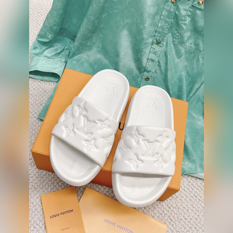 LV 2023 Monogram Embossed Slide Sandals IP Material Quality