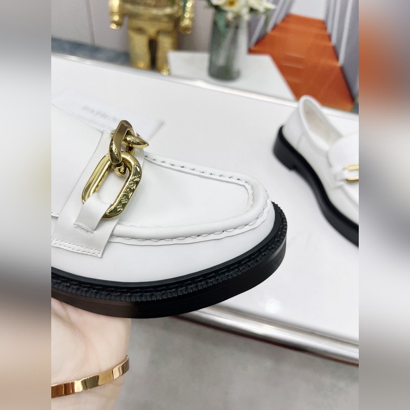 LV Louis Vuitton New Leather Chain Loafers Black Navy White