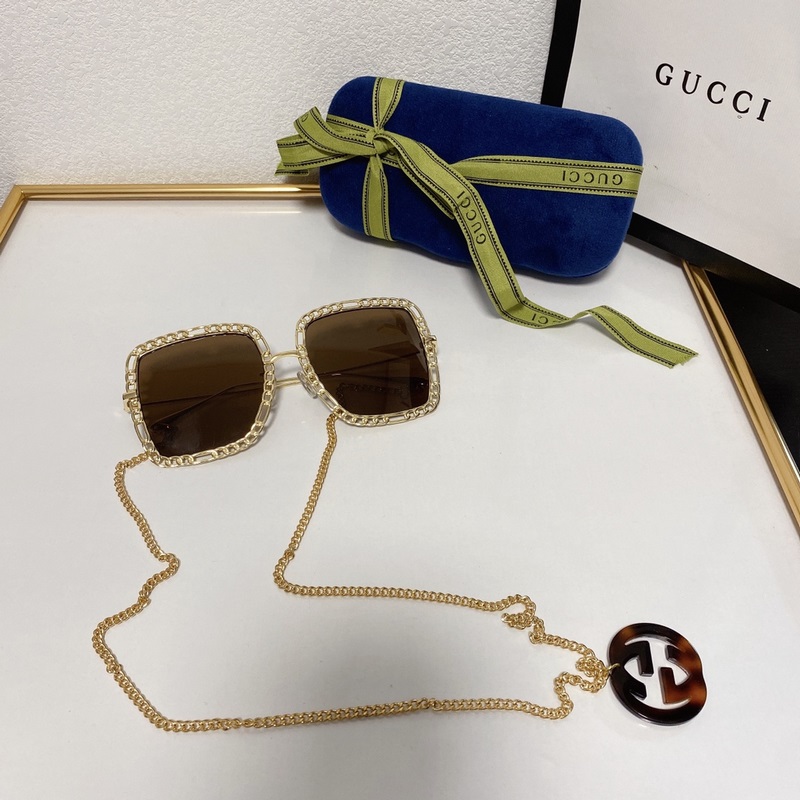Gucci GG1033S Metal Large Frame Sunglasses with Chain