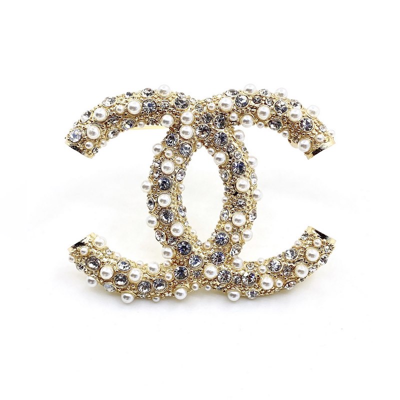 CHANEL Pearl&Crystal CC Brooch Brass High Quality