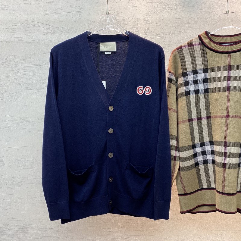 GUCCI Double G Wool Cardigan Sweater Unisex Preppy Style