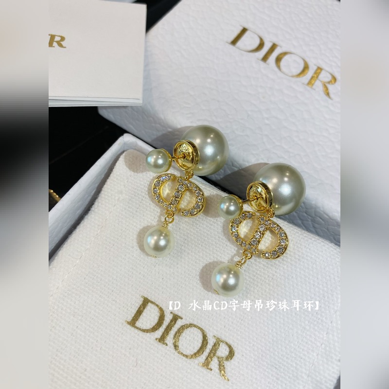 Dior Pearl Pig Nose Tassel Earrings CD Crystal Rhinestone Jewelry