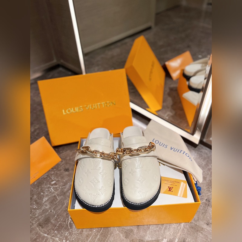 LV 2023 Monogram Embossed Slide Sandals IP Material Quality