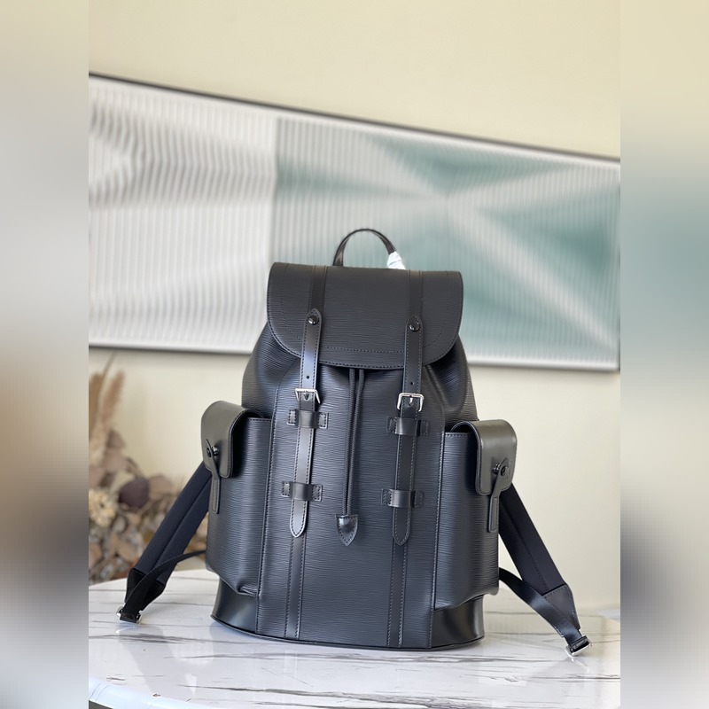 LV M41079 Black Water Ripple Leather Christo Her Backpack