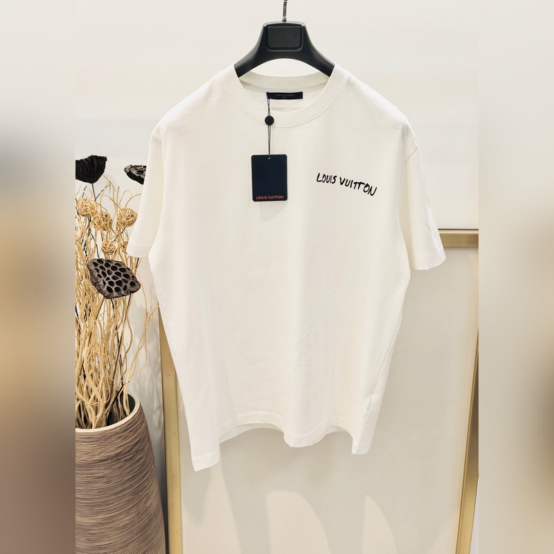 LV Louis Vuitton Unisex Cotton T-Shirt Size 46-48-50-52 Black&White