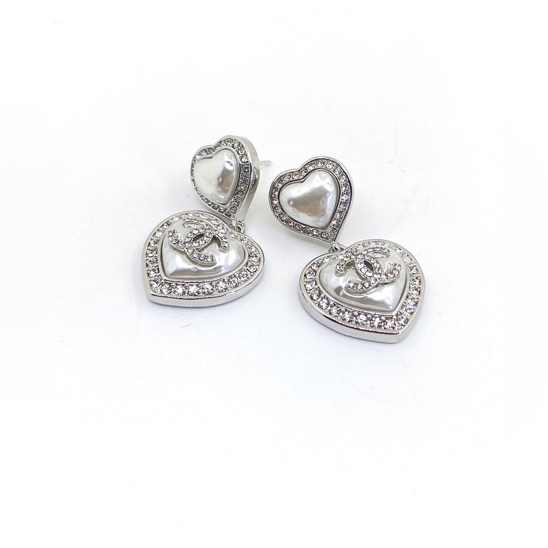 Chanel Platinum White Heart Earrings Z Brass Quality