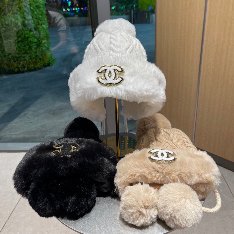 CHANEL 2023 Autumn Winter Knit Beanie with Pom Pom Warm and Stretchy