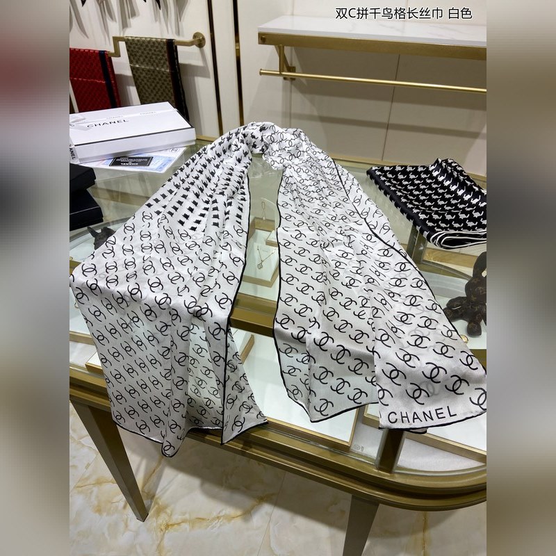 CHANEL Houndstooth Long Silk Scarf 100% Premium Mulberry Silk