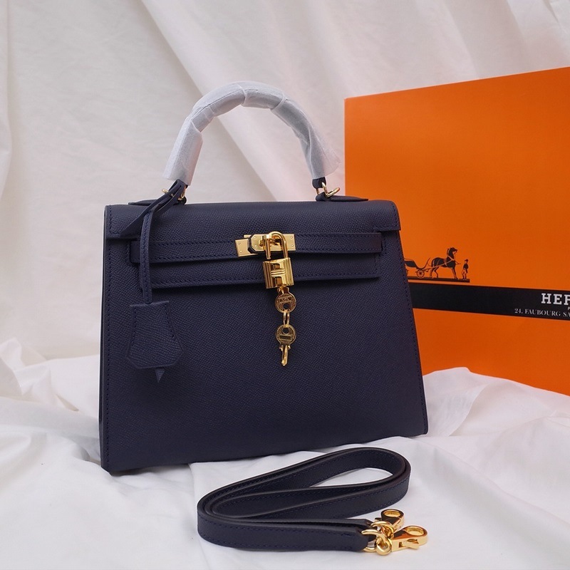 Hermès Kelly Handbag Shoulder Replica Bag Blue with Gold and Silver Hardware