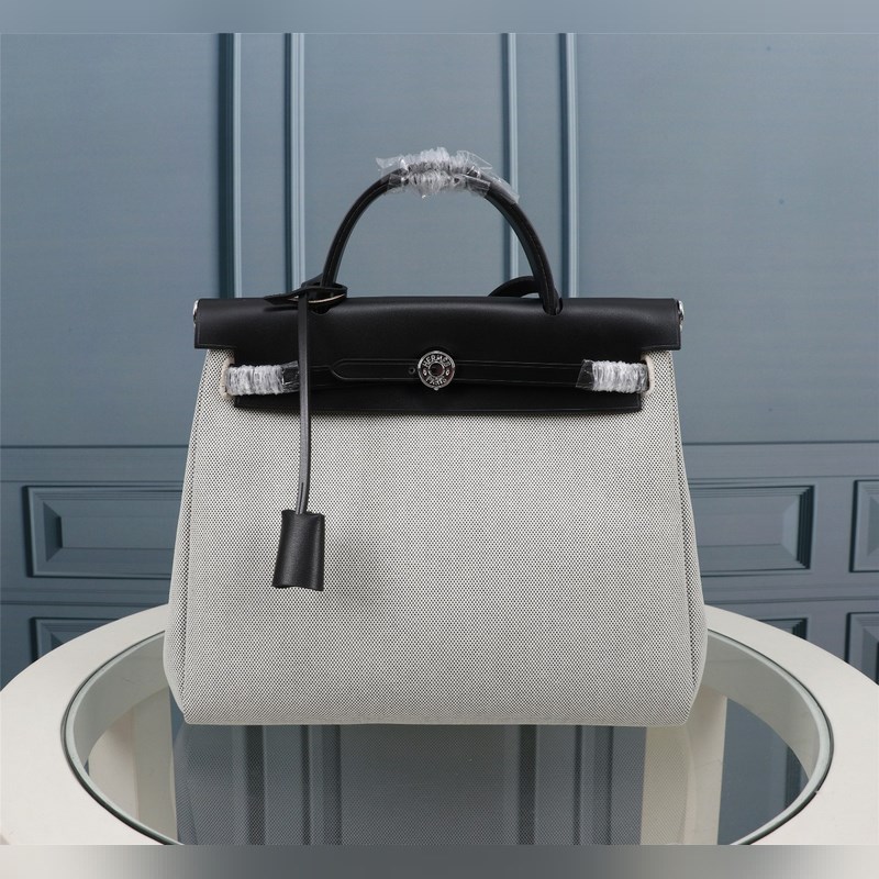 Hermès Herdag Waterproof Canvas Caba Black and White Premium Quality