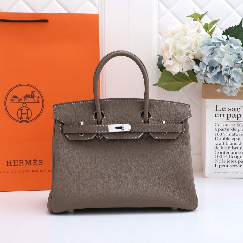 Hermès Birkin Replica Bag Elephant Grey with Gold and Silver Hardware