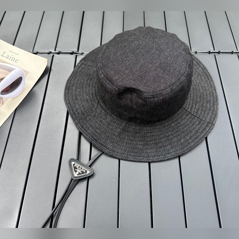 Prada Soft Wash Denim Triangle Fisherman Hat High Quality