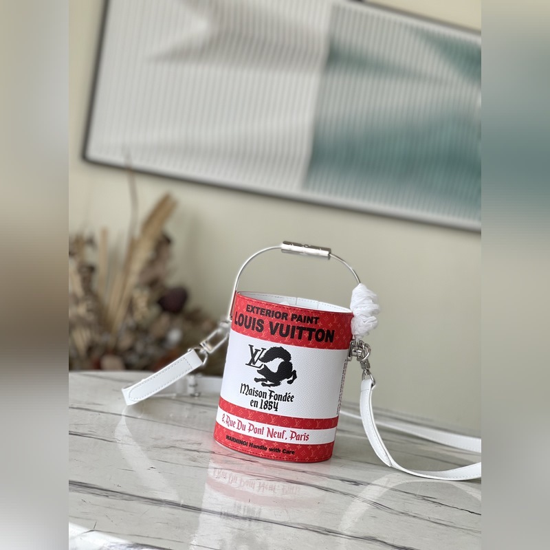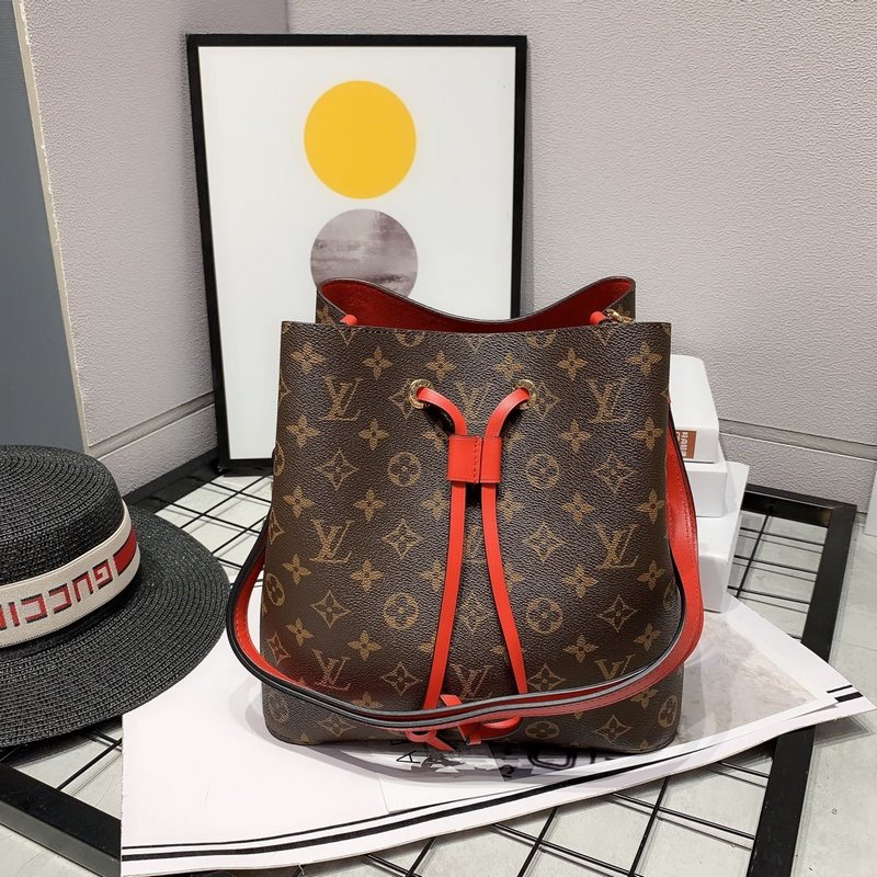 LV M81595 Red Handbag with Metal Handle Bucket Design