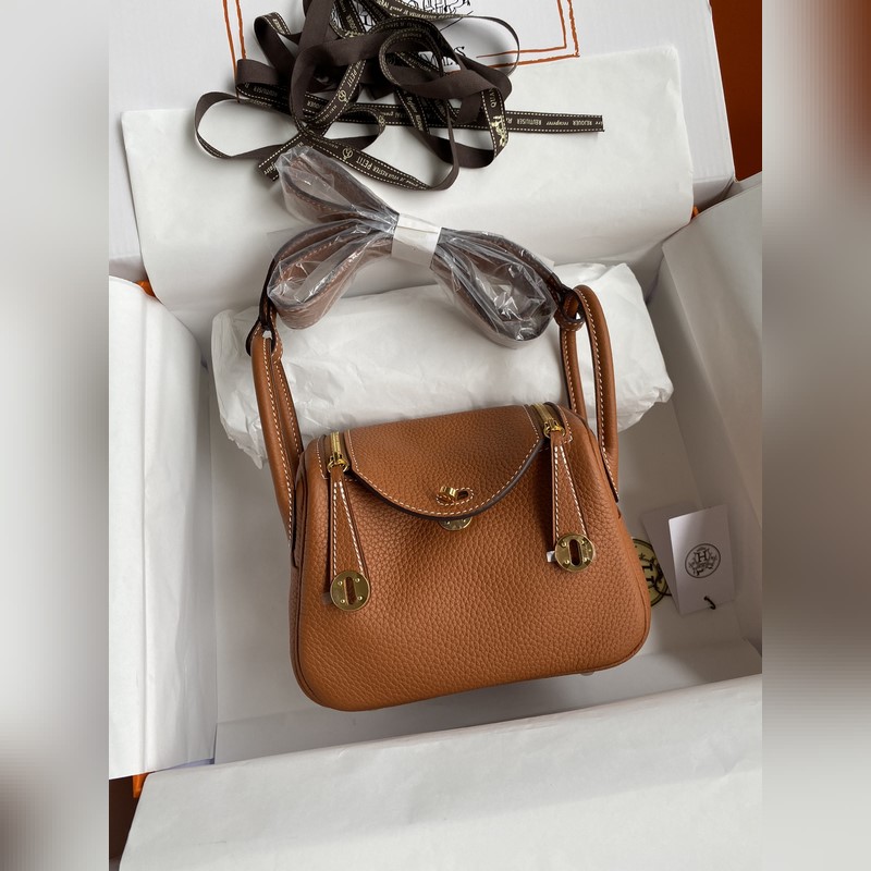 Hermès Mini Lindy 19cm Hand-Stitched TC Leather Gold Brown Gold Hardware
