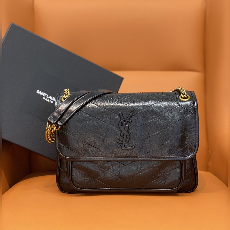 YSL 498894D Black Leather Replica Bag Genuine Quality Upgrade