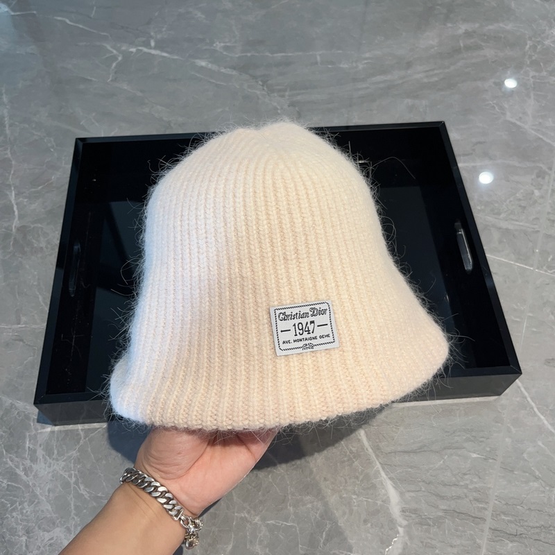 Dior new knitted hood hat in autumn and winter pink white and black