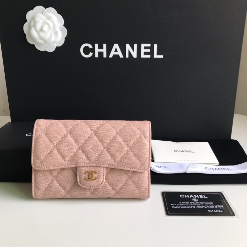 CHANEL A84341 Medium Wallet in Sakura Pink with Gold Hardware