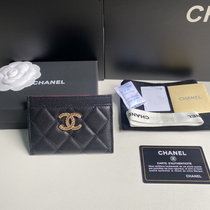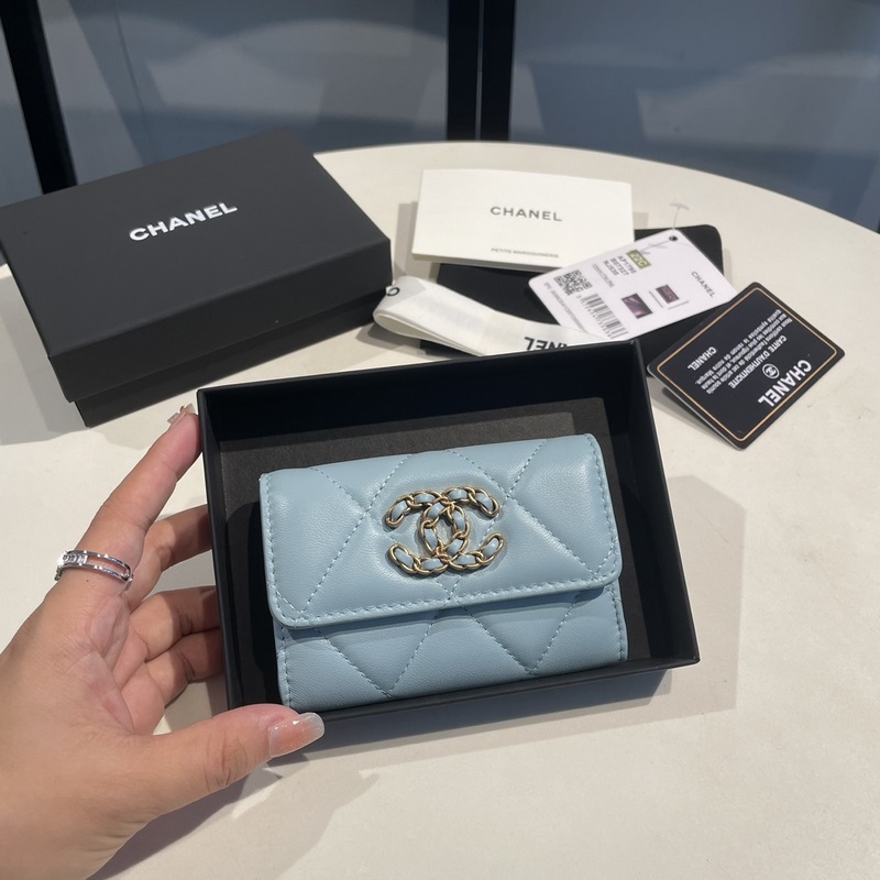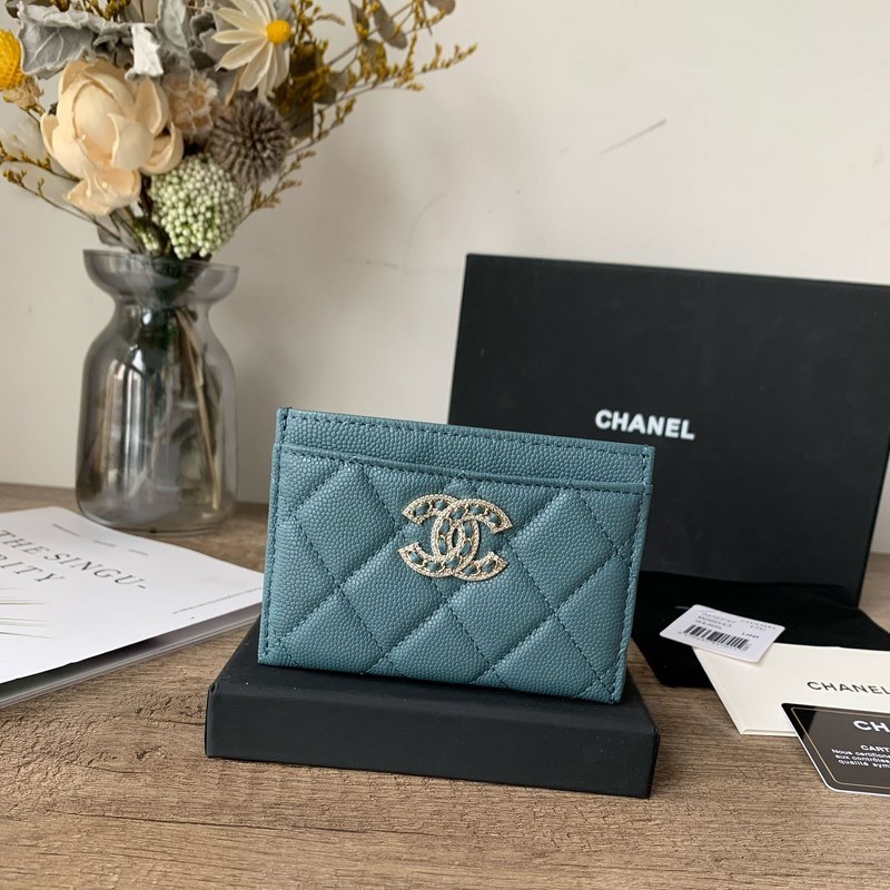 CHANEL Misty Blue Caviar Cardholder with Diamond