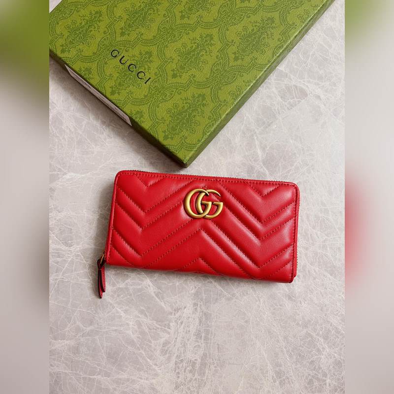GUCCI GG Marmont Quilted Long Zipper Wallet with Embroidered G