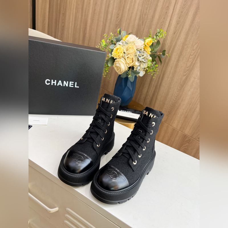 Autumn/Winter New Chanel Lace-Up Ankle Boots Original Design with Logo