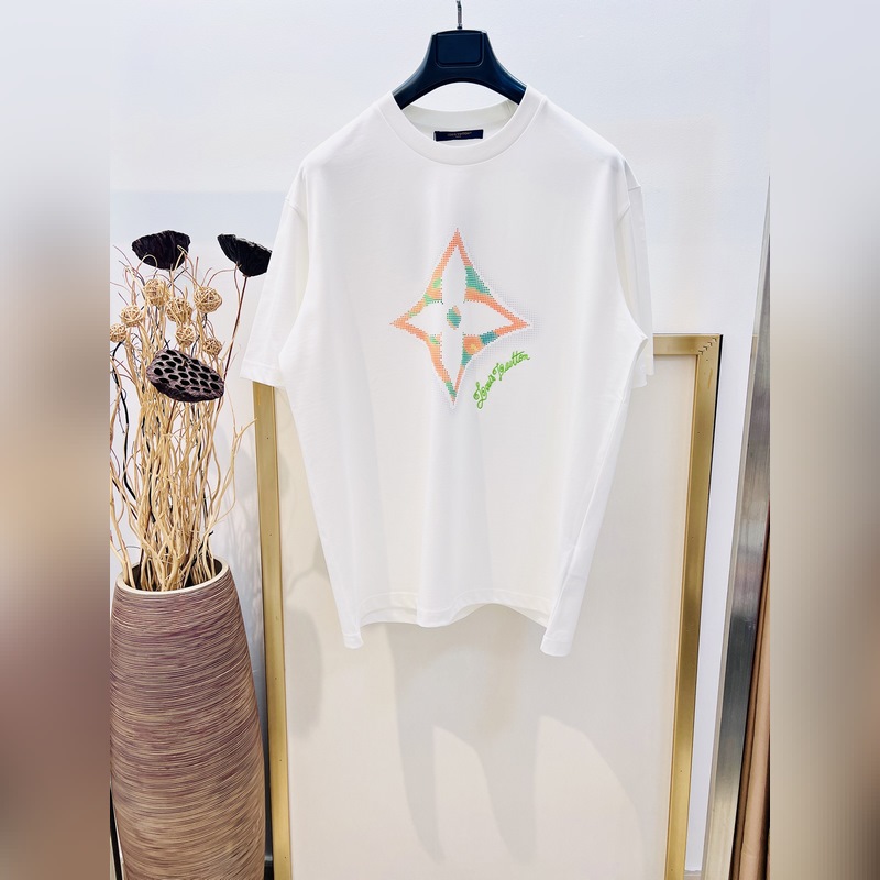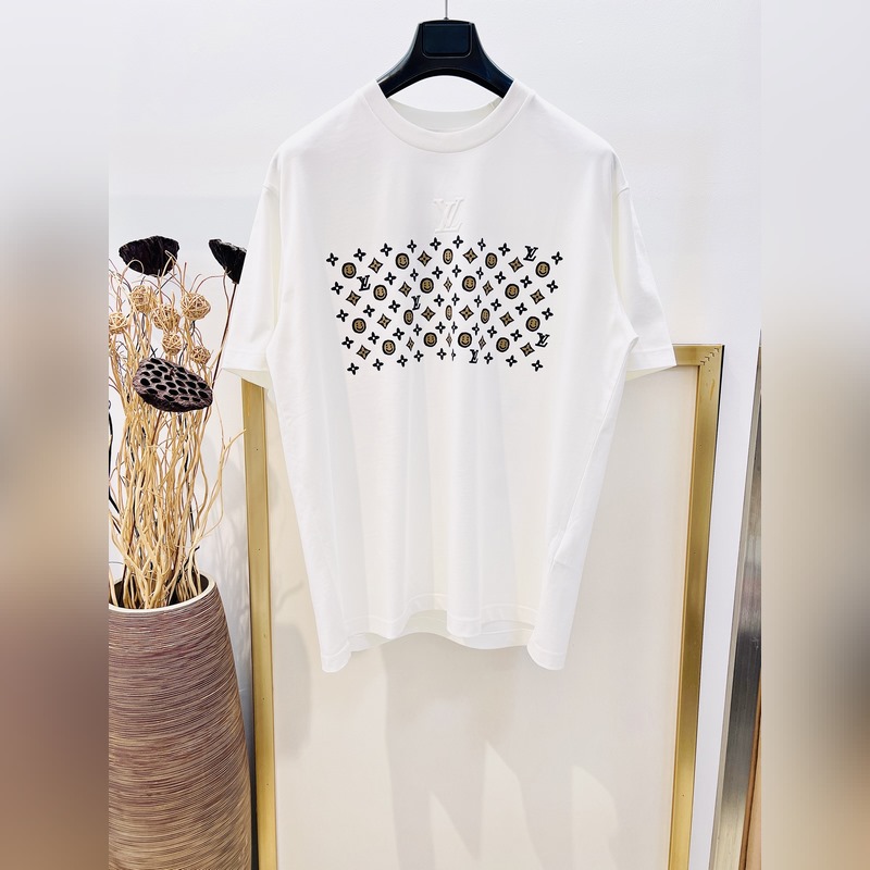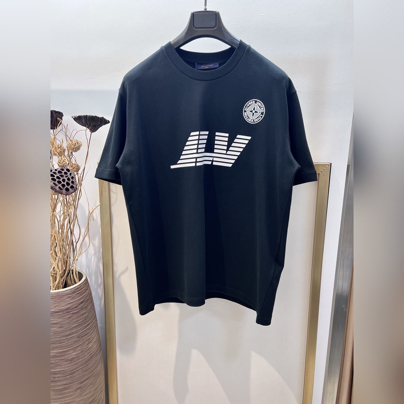 LV Louis Vuitton Unisex Cotton T-Shirt Size 46-48-50-52 Black&White