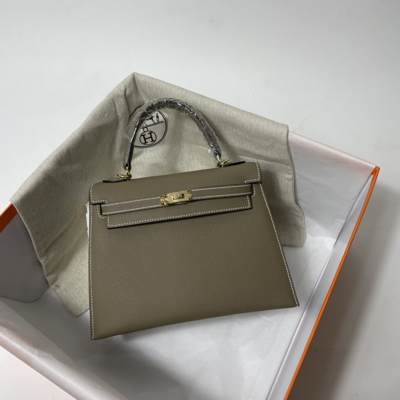 Hermès Kelly Handbag Shoulder Replica Bag Elephant Gray Gold Silver Hardware