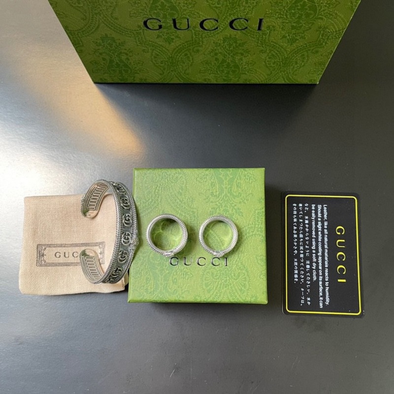 GUCCI 925 Silver Couple Ring Bracelet