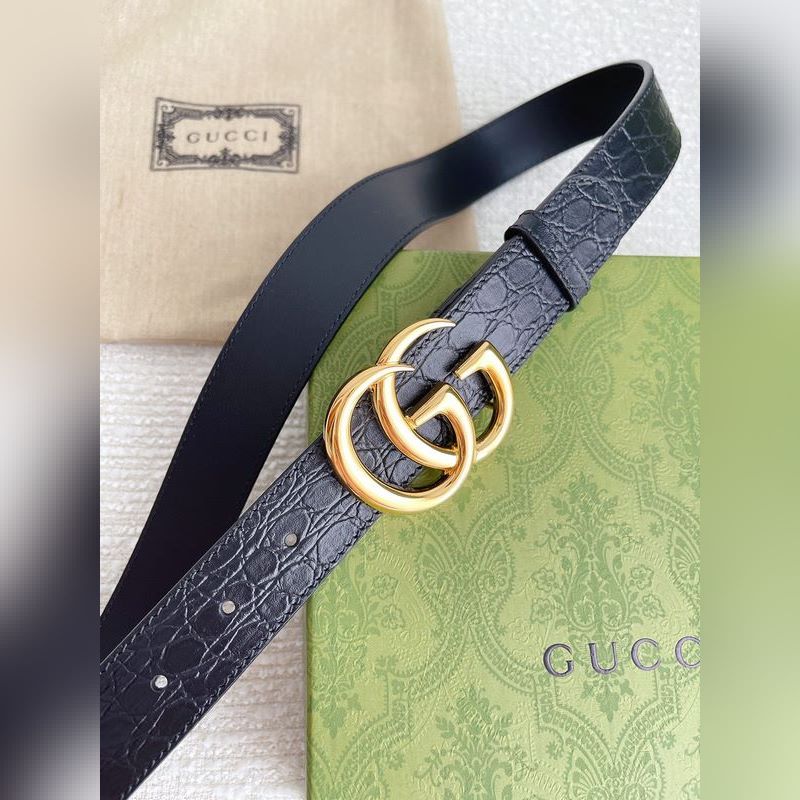 Gucci Shiny Double G Buckle Crocodile Pattern Belt