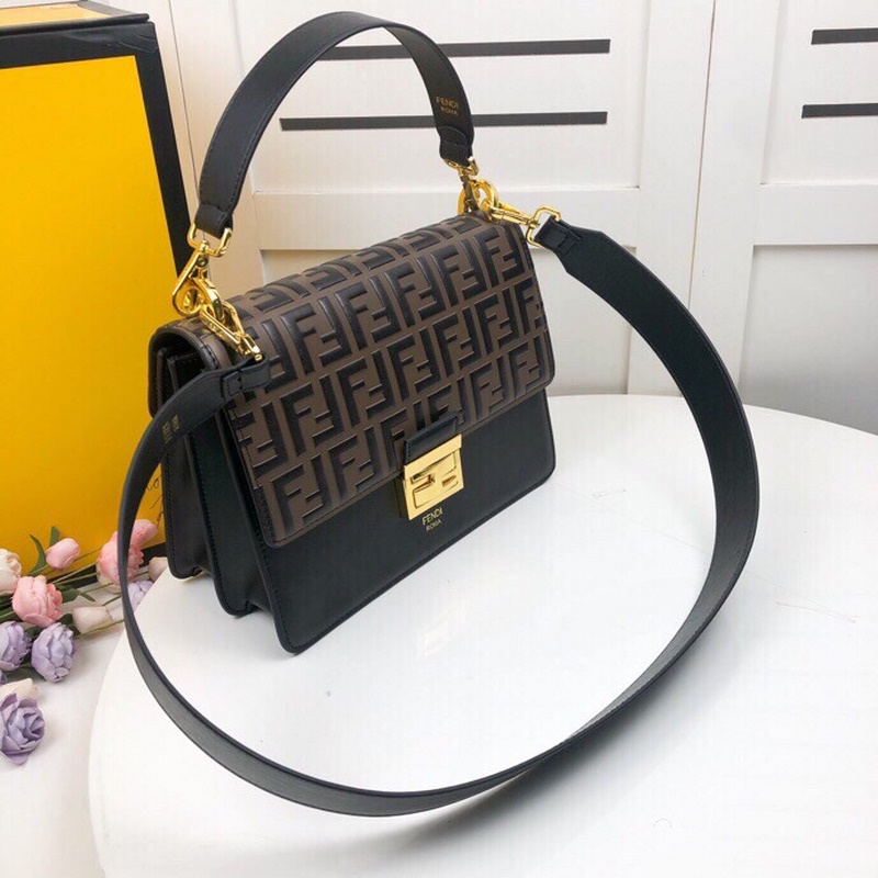 Fendi Kan I Black Leather with FF Embossed Detail and Dual Straps