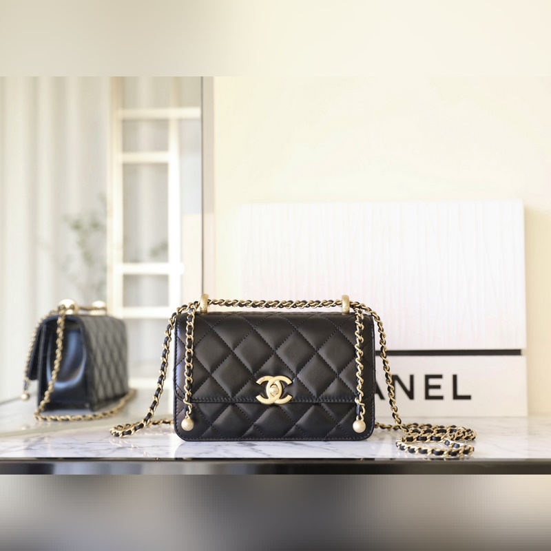 Early Spring Black Double Gold Beaded Chain Replica Bag Small Brand New