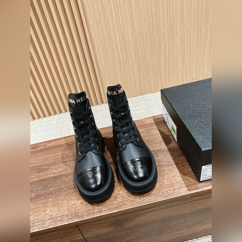 Chanel Chunky Platform Ankle Boots with CC Embroidery and Metal Logo