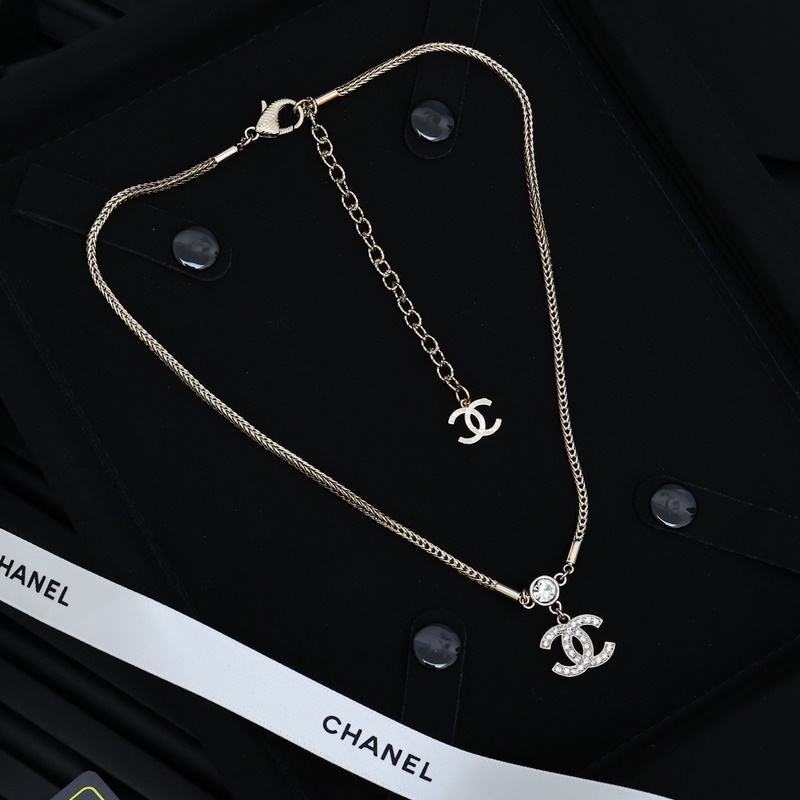 Chanel Double C Heart Rhinestone Necklace Brass Trendy&Versatile