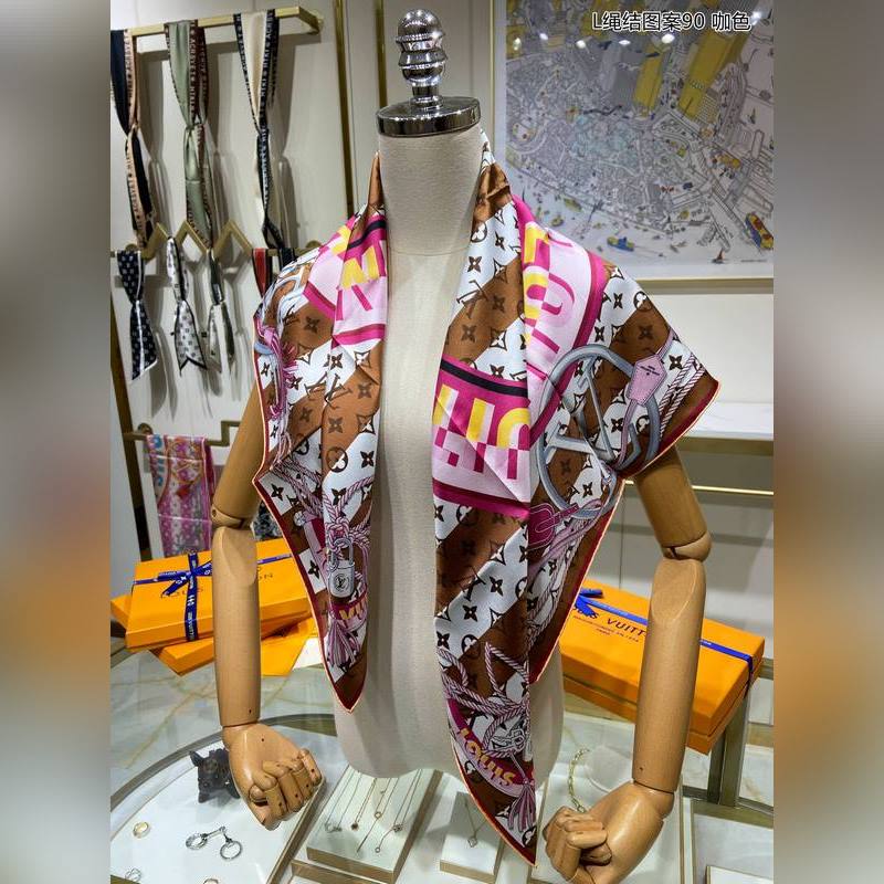 LV L Knot Pattern 90 Silk Scarf 100% Premium Twill Silk