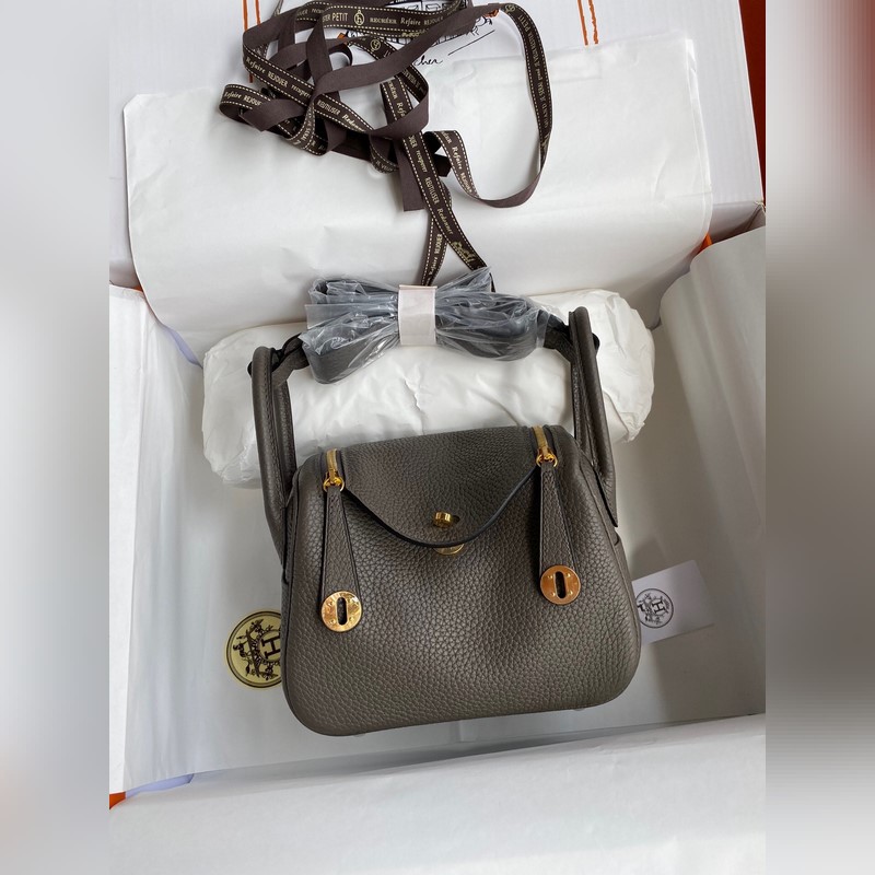 Mini Lindy 19cm TC Leather Gray with Gold Hardware