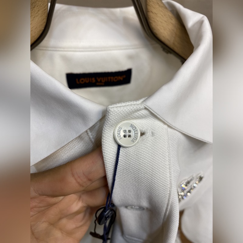 1V Louis 2024FW pique fabric, interpreting the dandy style of the 2024 Spring/Summer runway. The 1V patch on the chest is embroidered with rhinestones and beads, and the Marque 1.Vuitton embroidered patch on the back can inject a trendy touch to the casual look.