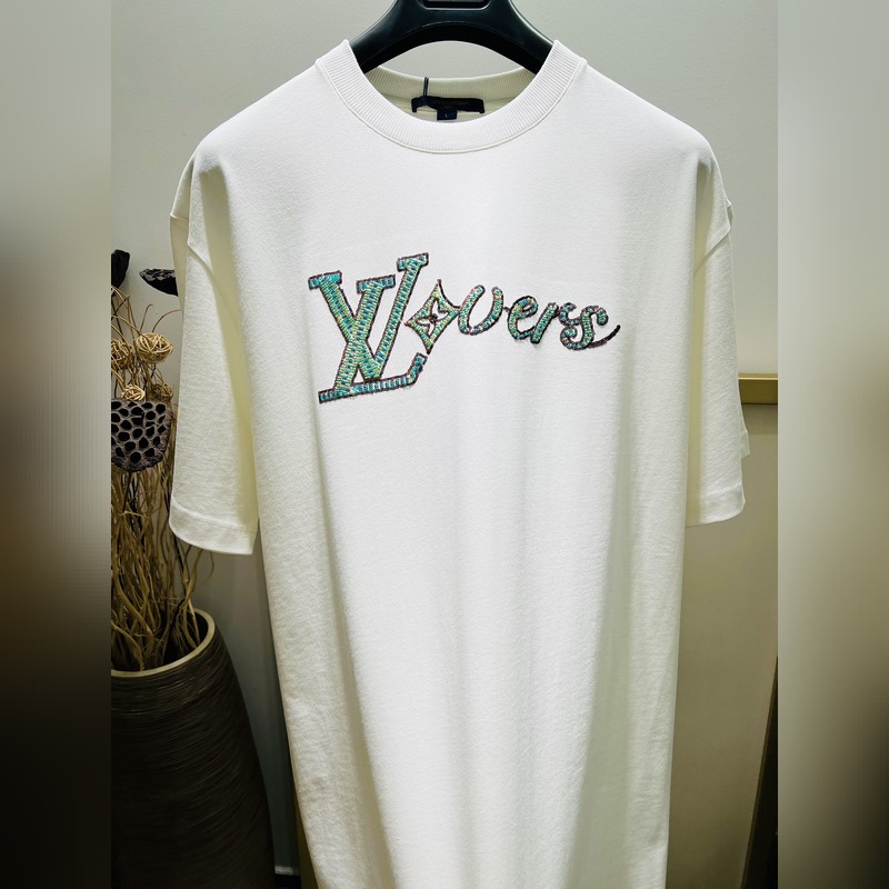 1V Louis Home 2024FW Spring/Summer Series Pharrell Donald Trump Press Conference Super Heavy Beads/Embroidery/Beading Logo Gradient Brand Letters Half Sleeve T-shirt Simple and Classic Heavy Washed Cotton Shows the Trendy Top Aura Rush Rush Rush