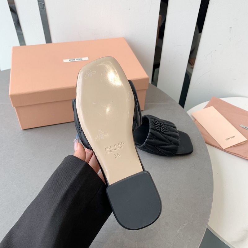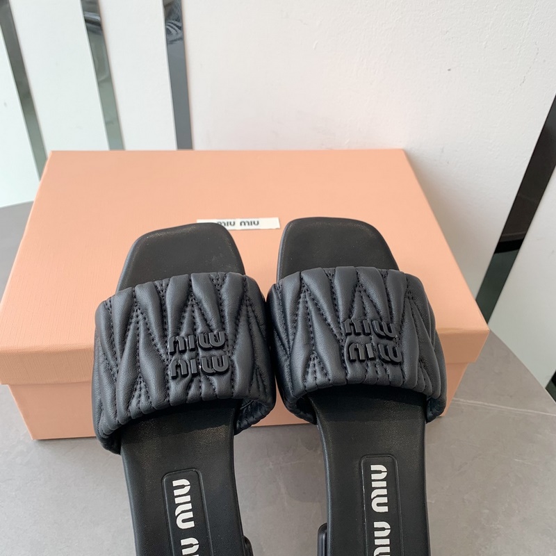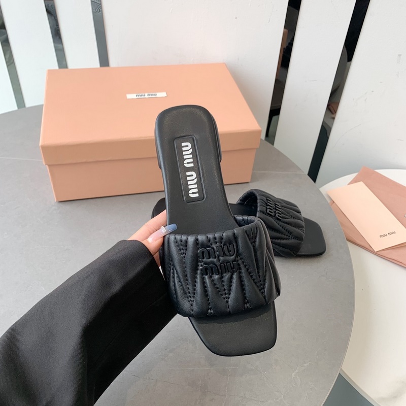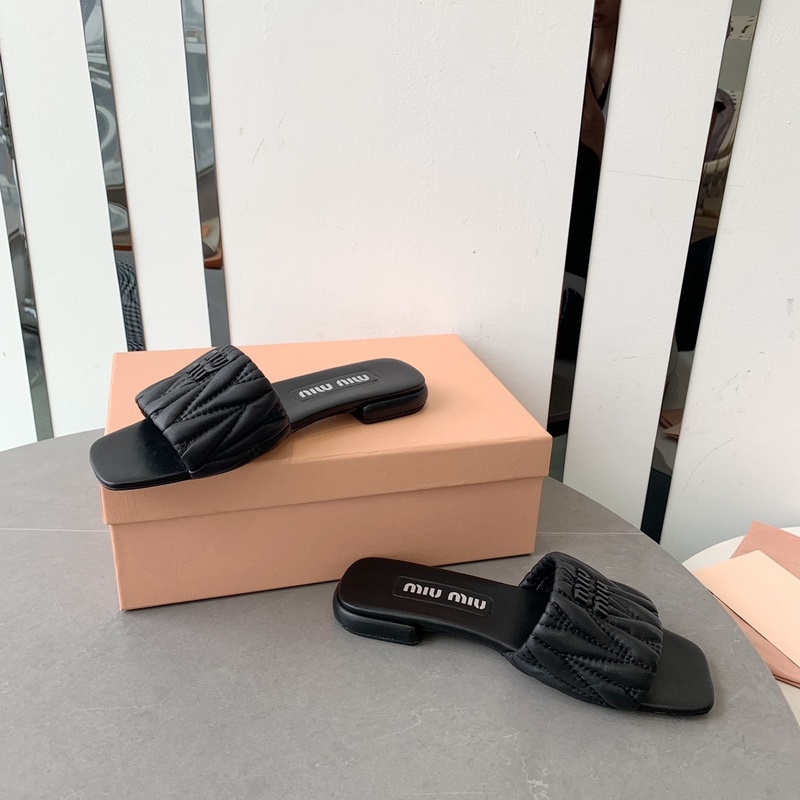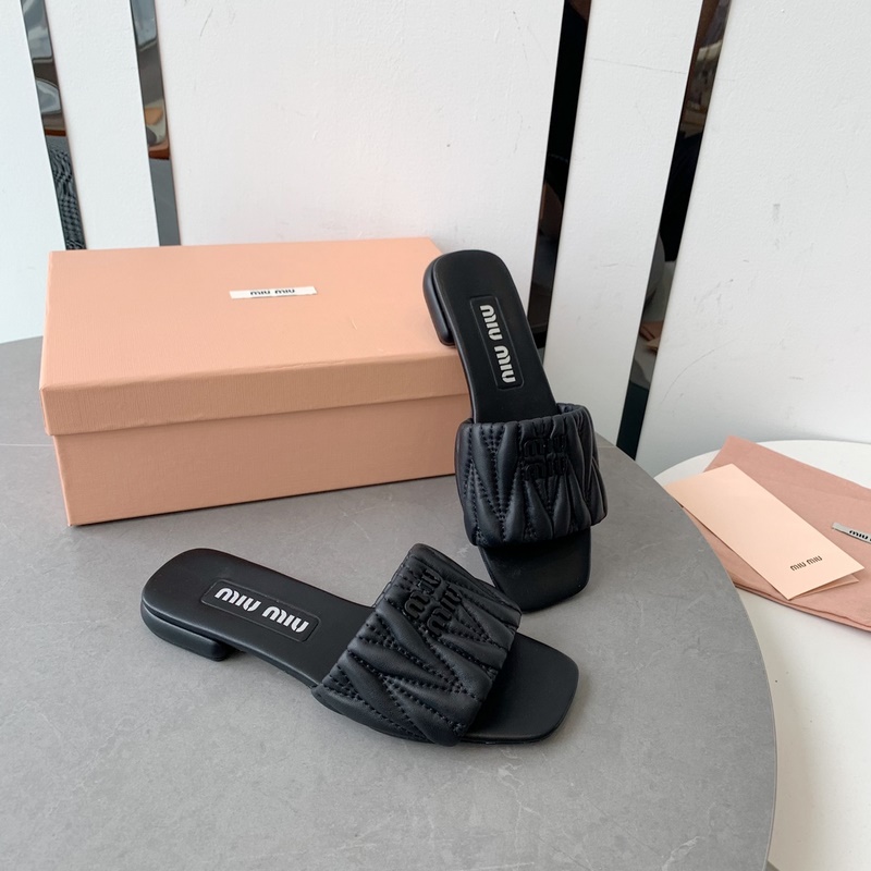 2023Miumi*2023ss spring and summer new flat lambskin sandals and slippers