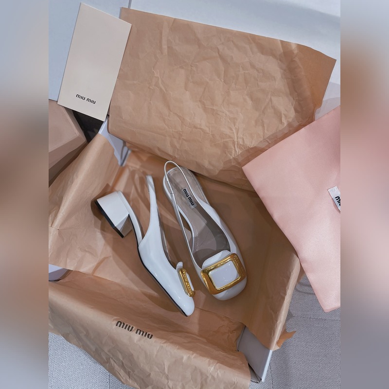 2023ss spring and summer patent leather round toe square buckle single shoe sandals