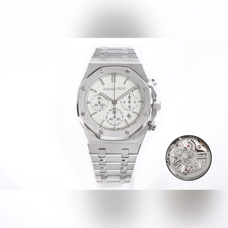 2025 New AP/Audemars Piguet Royal Oak series new 26240 chronograph, using the same original (6-digit small seconds, transparent movement Caliber4401 chronograph movement), with anti-glare sapphire high-transparency glass, the dial is decorated with the classic Grande Tapisserie large checkered pattern, 316 stainless steel uses alternating satin brushing and polishing, presenting a matte and glossy effect, the rugged and atmospheric 41mm dial is full of power, and the super luminous display allows you to read the time in any environment.